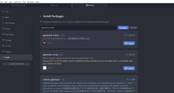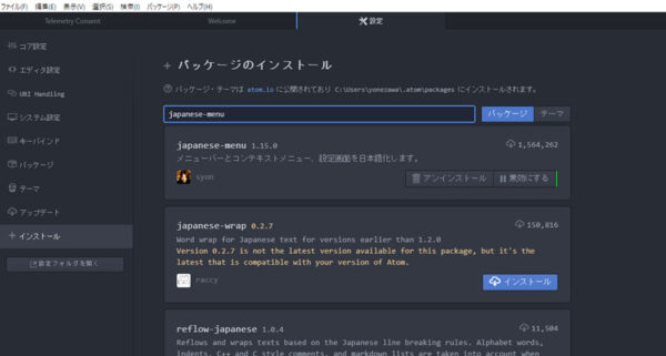 このままだと英語表記でわかりずらいと思うので日本語化パッケージをいれていきます。
