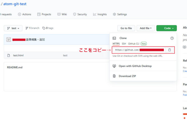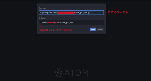 AtomでGitHubのリポジトリからpullする(ダウンロード)