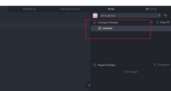 データの変更があるとGitタブのUnstaged Chagesに変更があったファイル名が表示されます