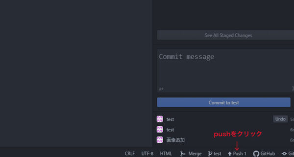 最下部の「push」の欄の横に数字が表示されているのを確認出来たらクリック
