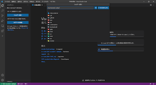 ここまでの手順で無事仮想環境にssh接続したVSCodeが開ければ一旦OKです。 次にEC-CUBEを初期状態で動かせるようにしていきます。