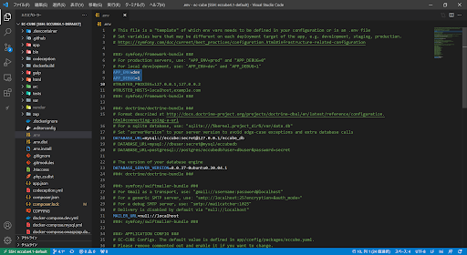 さっそくVSCode側.envファイルを修正してみましょう。 とりあえず、モードを開発用に切り替えてみます。