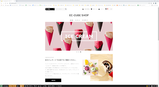ここまでの手順が終わったらブラウザで http://localhost:8000 へアクセスしてみましょう。 EC-CUBEデフォルトTOPページが表示されればOKです 管理画面はデフォルトだと http://localhost:8000/admin です。 id: admin pass: password
